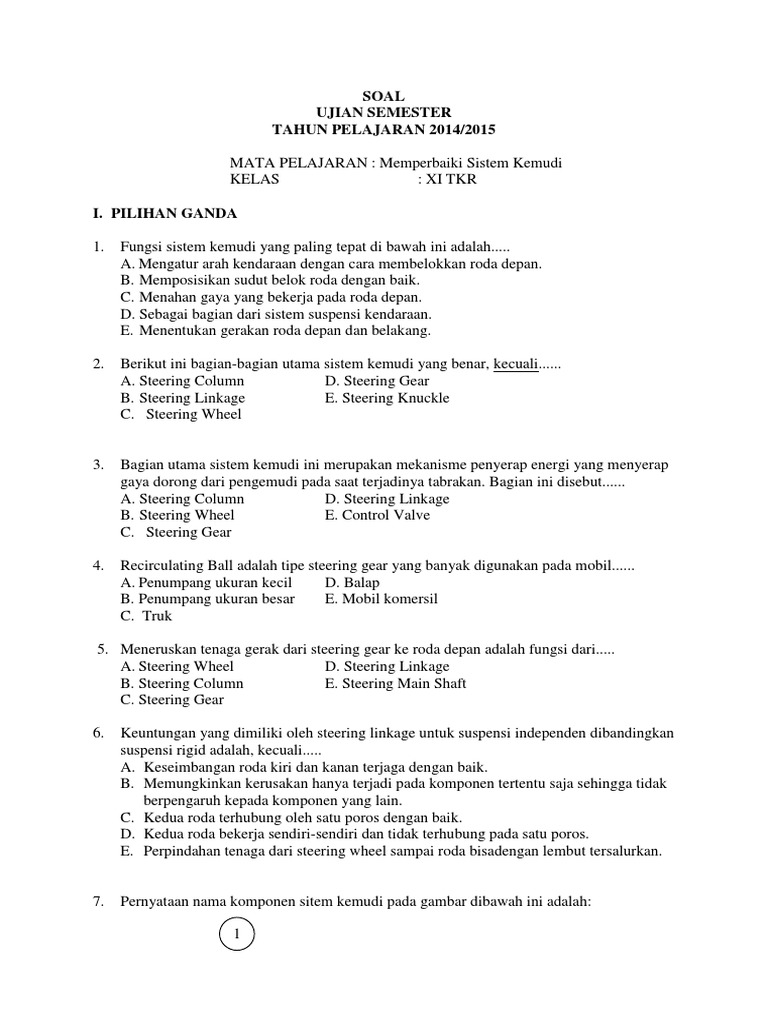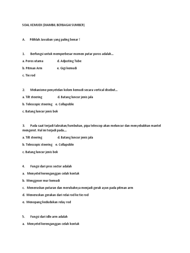 Contoh Soal Dan Jawaban Pilgan Otomotif Tentang Kemudi - Peranti Guru