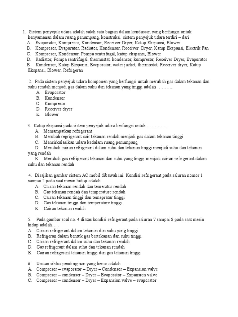 Soal Pilihan Ganda Sistem AC | teknik-otomotif.com