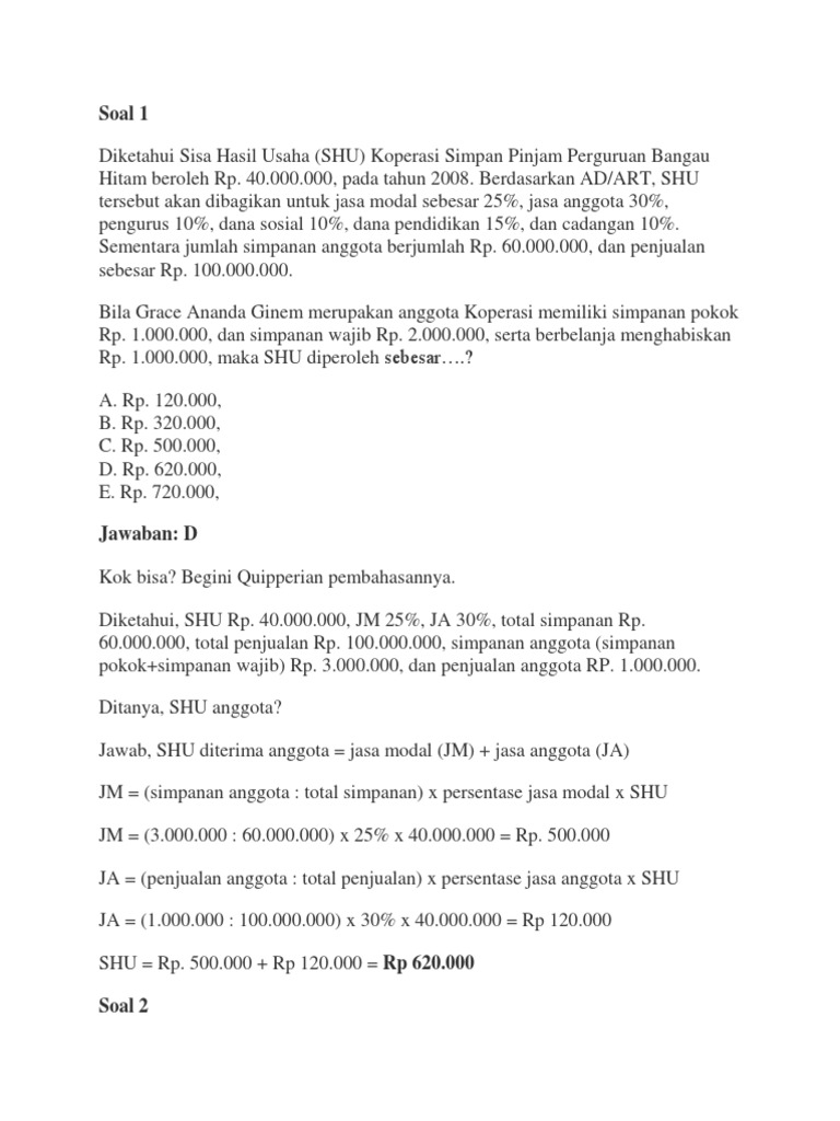 DOC) Materi Essay UKK Ekonomi Menghitung SHU | Kintania Dewiraputri - Academia.edu