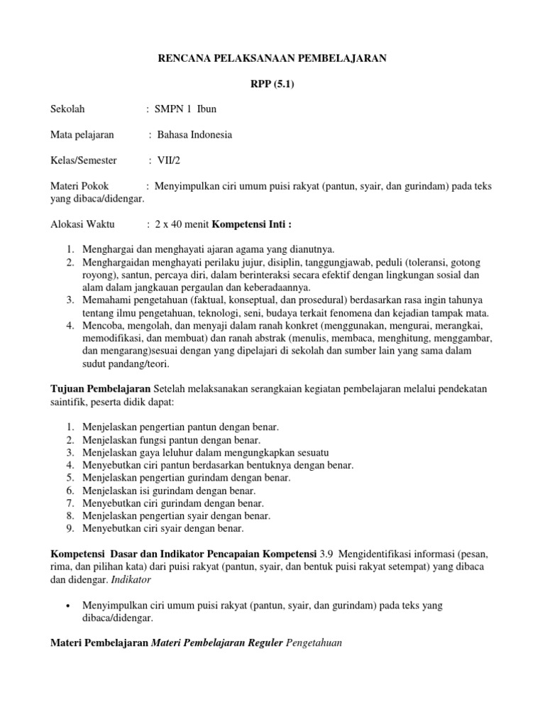 Contoh RPP K13 Bahasa Indonesia Puisi Rakyat Terbaru Disertai …
