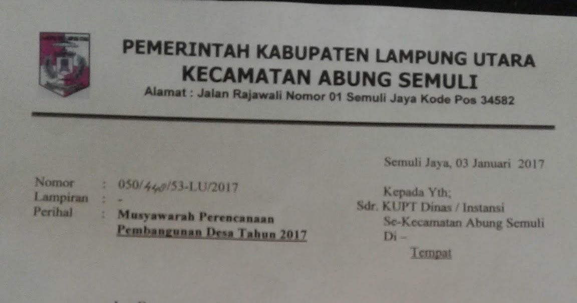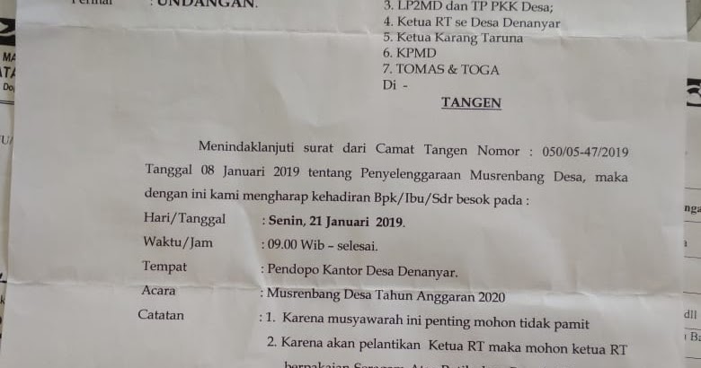 Contoh Surat Undangan Musrenbang Desa - Sample Surat Undangan