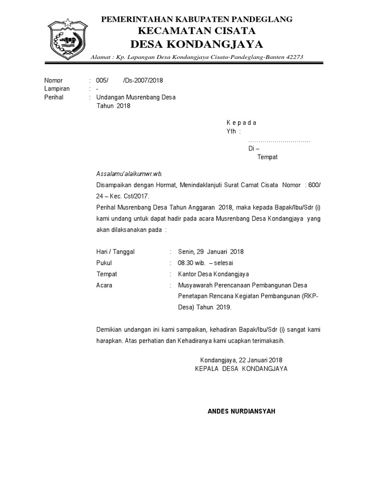 PDF) CONTOH SURAT UNDANGAN DESA.pdf | reza harahap - Academia.edu