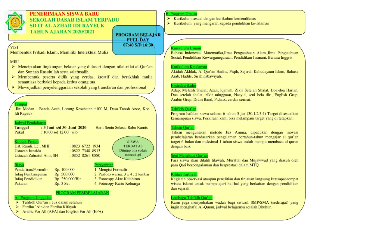 Sekolah dasar Islam terpadu Aceh Timur buka penerimaan siswa baru …
