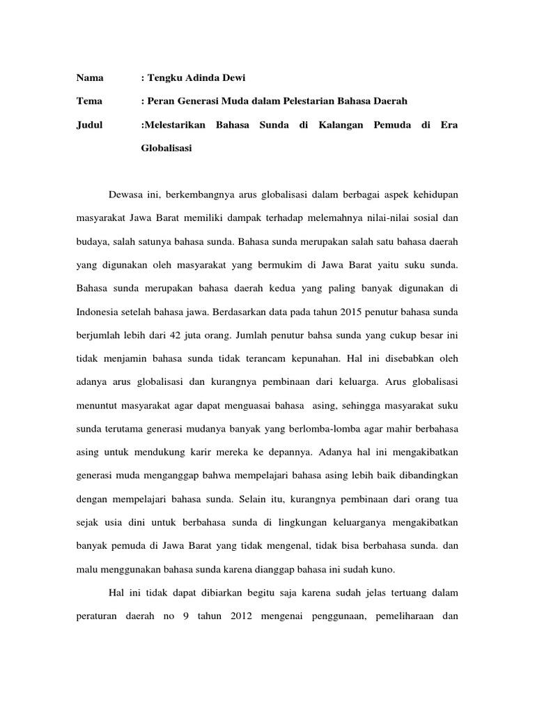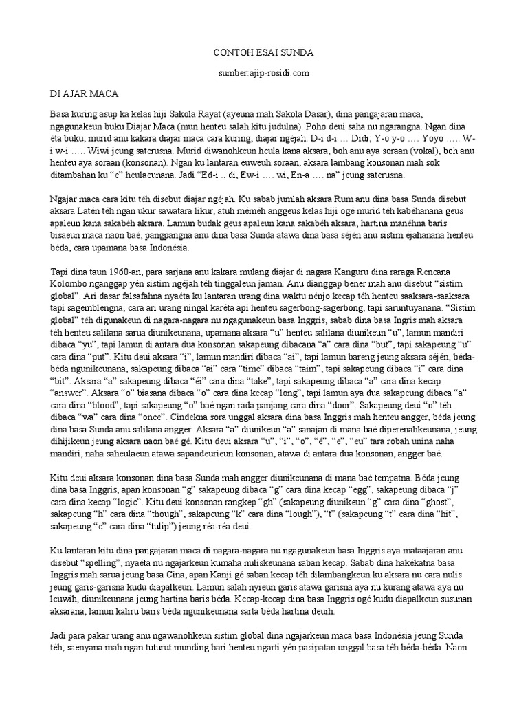 Contoh karangan essay dina bahasa sunda