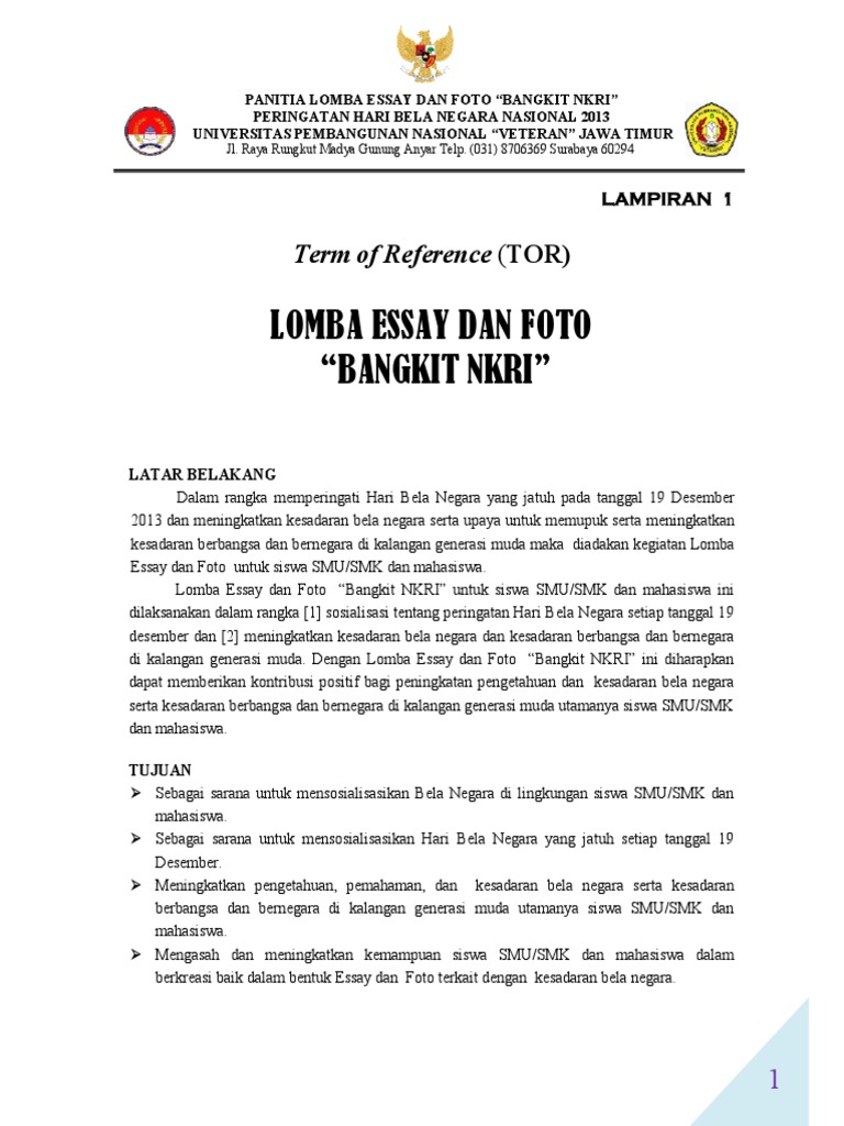 TOR Lomba Essay Dan Foto Bela Negara 2013