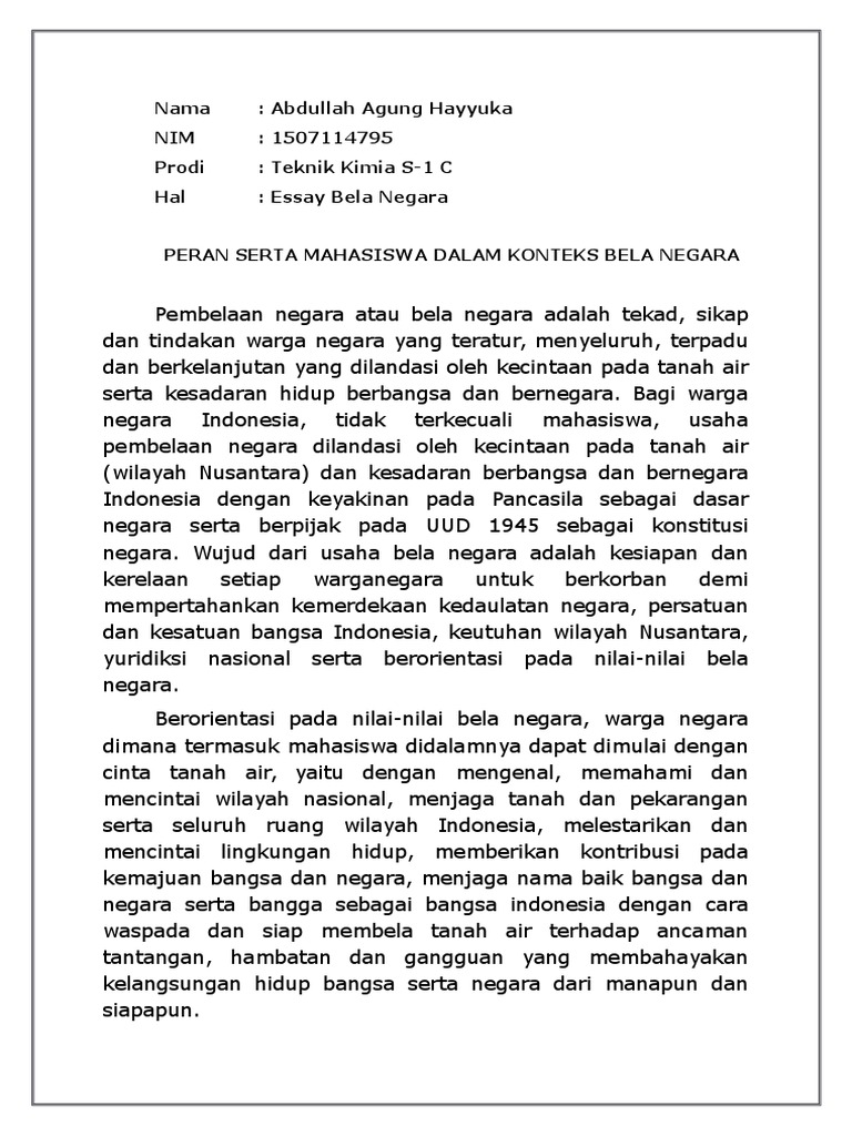 Buatlah judul essay dengan tema bela negara - Brainly.co.id