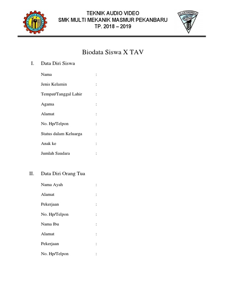 Contoh Biodata Diri Lengkap Siswa Smp | Kumpulan Soal pelajaran 8