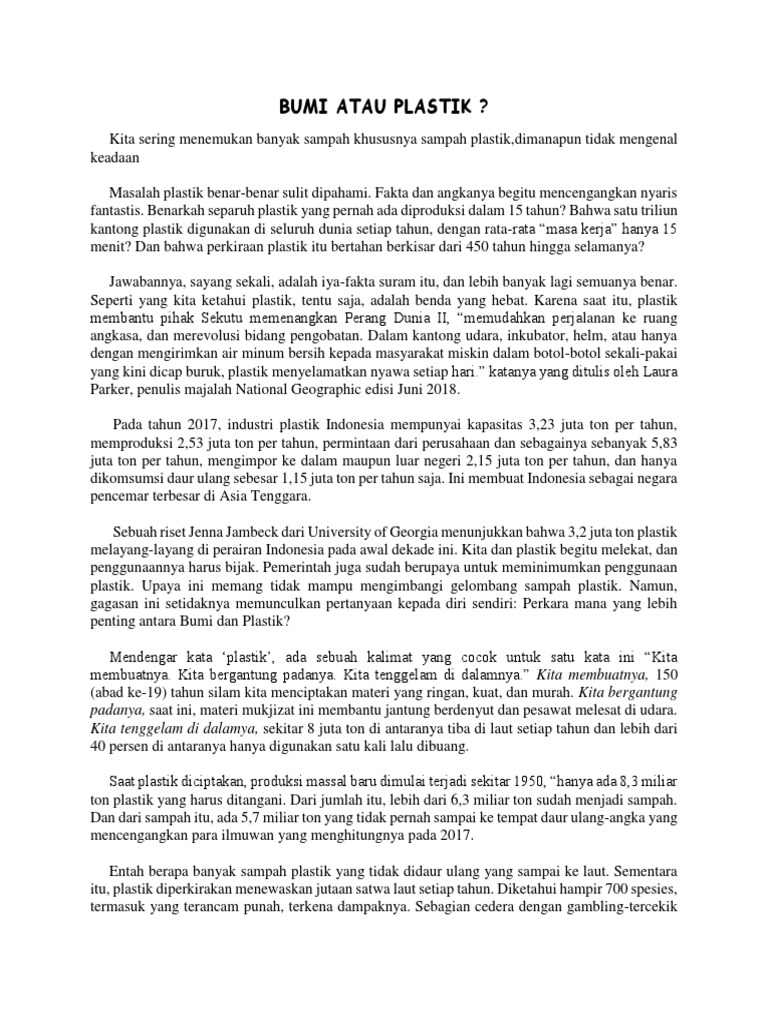Essay Tentang Bumi Atau Plastik