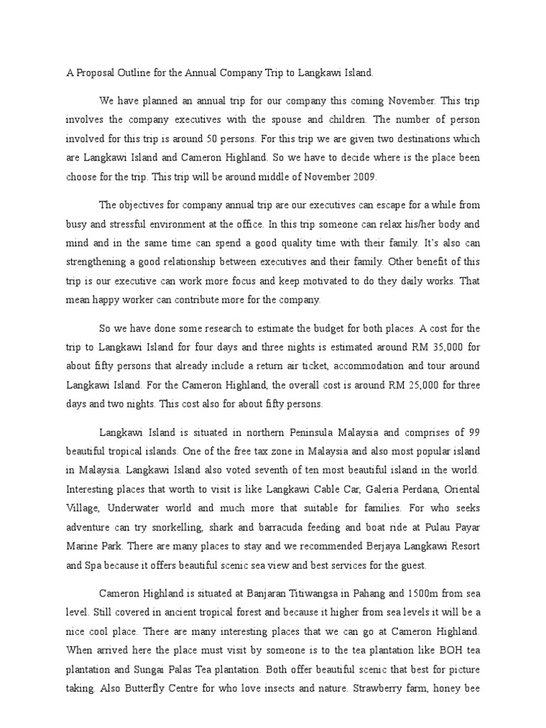 A Proposal Outline for the Annual Company Trip to Langkawi Island