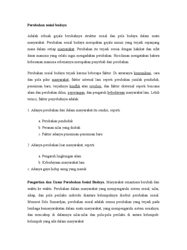 Perubahan Sosial Budaya Yang Terjadi Di Masyarakat Menandai …
