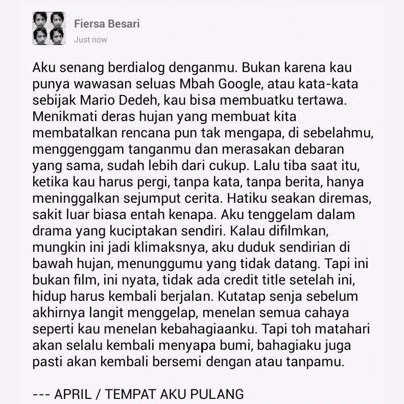 Fiersa Besari on Twitter: “Short story from track 4: April #TempatAkuPulangRepackage http://t.co/Sq0m38njHU”