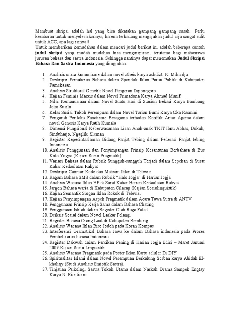 Kumpulan 50 Judul Skripsi Pendidikan Bahasa dan Sastra Indonesia | eko prasetyo - Academia.edu