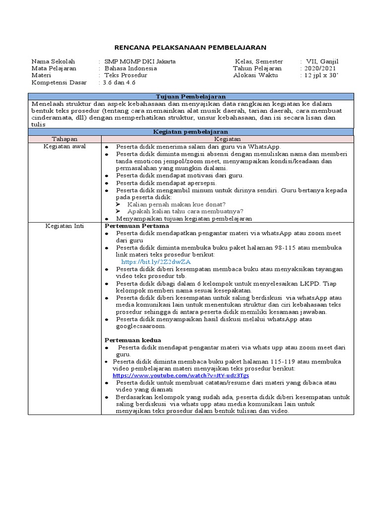 RPP PJJ Teks Prosedur 3.6 dan 4.6