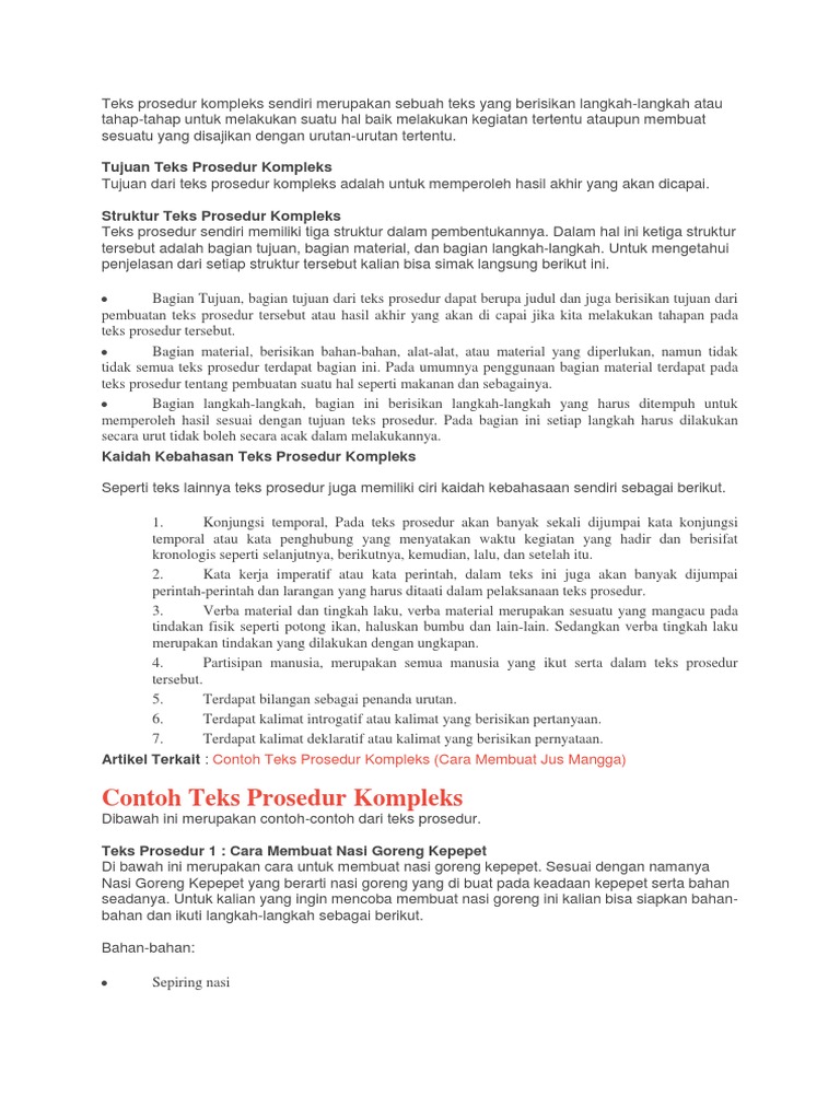 12 Contoh Teks Prosedur Kompleks Singkat Beserta Strukturnya - rpp.co.id