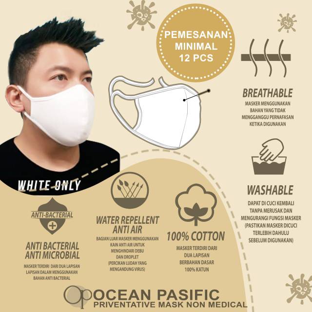12 Pcs Masker Kain Anti Microbial Anti Bacterial 100% Cotton Anti Air | Shopee Indonesia