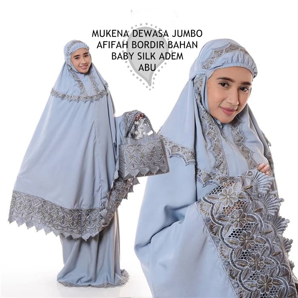 Mukena Dewasa Afifah Bahan Kain Baby Silk Cantik Bordir Motif Bunga Mewah | Shopee Indonesia