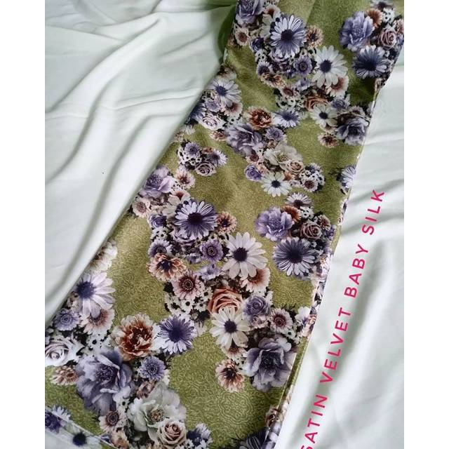 Kain - kain satin - kain motif - kain satin velvet - kain satin baby silk - kain satin velvet baby silk motif bunga - kain 3.4 meter - K-073 di lapak VENDOR TAS SEMINAR Nafya Room | Bukalapak