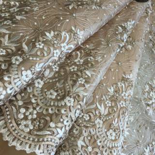 GROSIR BROKAT SANGKARA: Kain Brokat Warna Krem Kulit / Nude untuk Gaun Pengantin