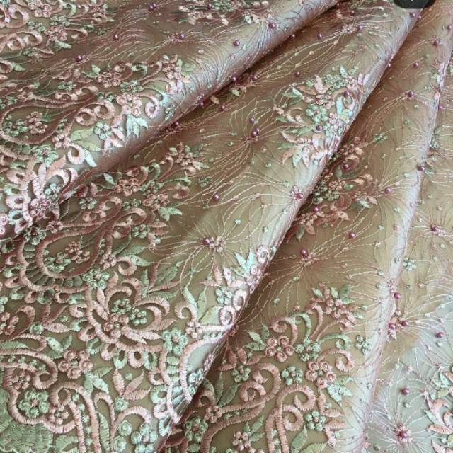 Kain Kebaya Tulle Bordier 3D warna Champagne | Shopee Indonesia