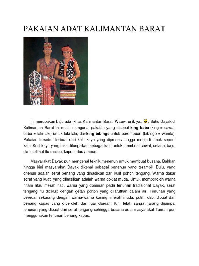 Eksotisme Pakaian Adat Kalimantan Barat - MerahPutih