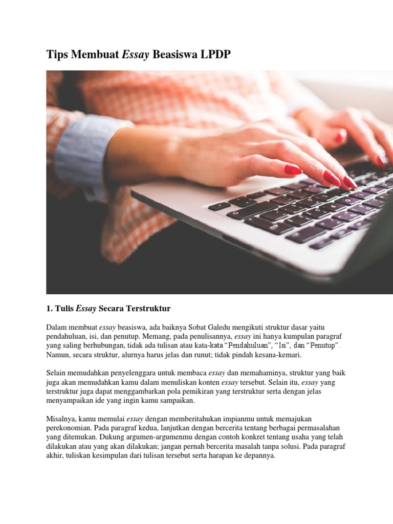 Tips Membuat Essay Beasiswa LPDP: 1. Tulis Essay Secara Terstruktur