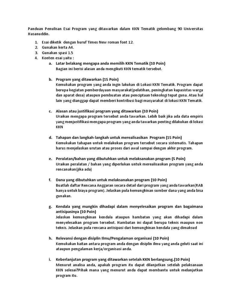 Panduan Penulisan Essay Program Yang Ditawarkan Dalam KKN Tematik Gelombang 90