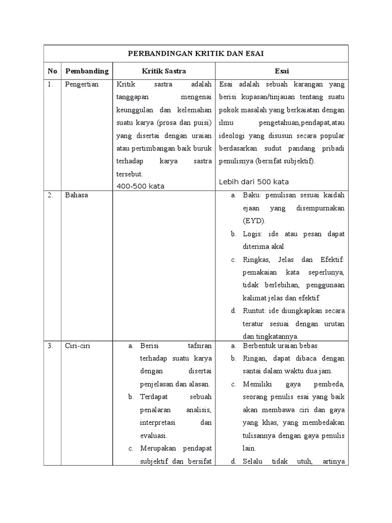 Perbandingan Kritik Dan Essai