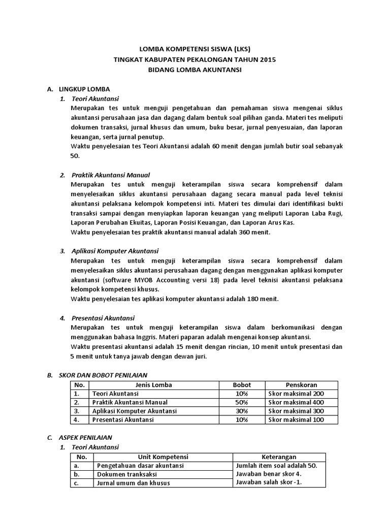 Kisi-kisi Lomba LKS Akuntansi Kabupaten Pekalongan Tahun 2015