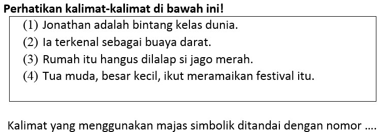 CONTOH SOAL DAN PEMBAHASAN KALIMAT BERMAJAS DALAM TEKS (SOAL UN 2019 NOMOR 13) ~ ZUHRI INDONESIA