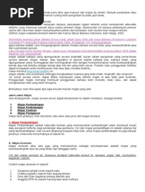 MAJAS.docx - Pengertian Majas Majas adalah pemanfaatan kekayaan bahasa pemakaian ragam tertentu untuk memperoleh efek-efek tertentu yang membuat sebuah | Course Hero