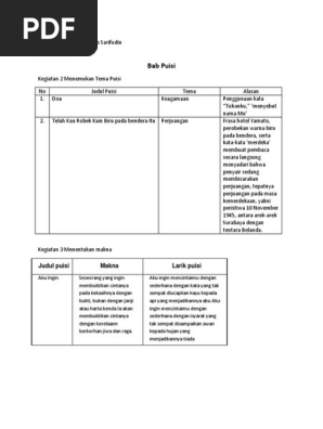 Kegiatan 2 Menemukan Tema Puisi Doa dan Telah Kau Robek Kain Biru …