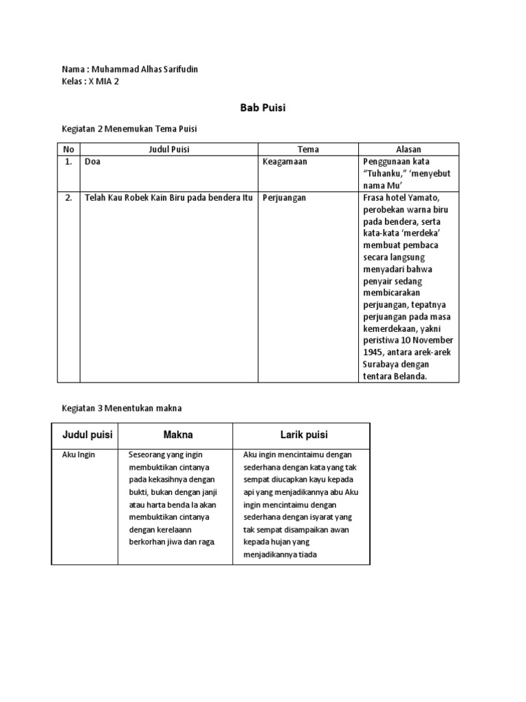 111111PUISI.docx - Nama Muhammad Alhas Sarifudin Kelas X MIA 2 Bab …