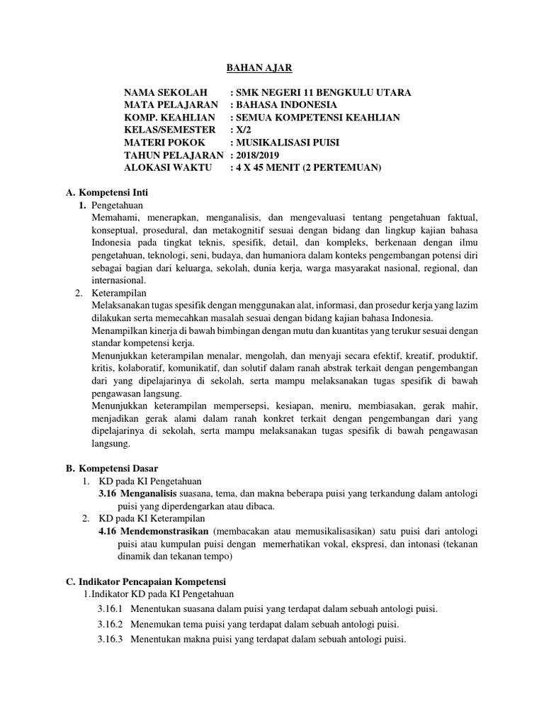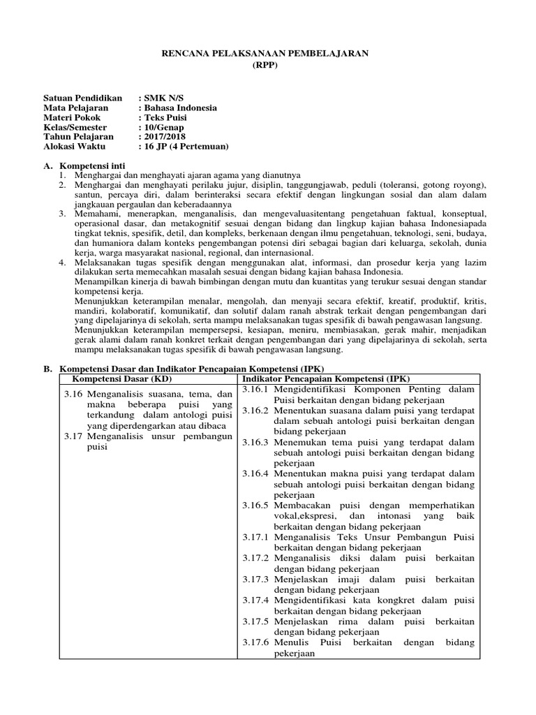 DOC) RENCANA PELAKSANAAN PEMBELAJARAN TEKS PUISI 2019/2020 | Lutfi …