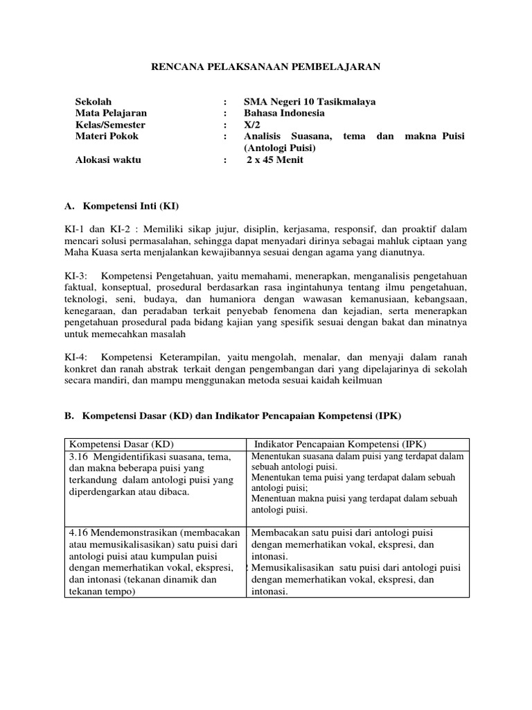 Rpp Teks Puisi Kelas X Semester 2 Kd 3.16, 4.16 - Raytecho