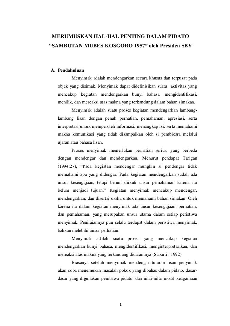 makalah menyimak Merumuskan hal hal penting dalam pidato