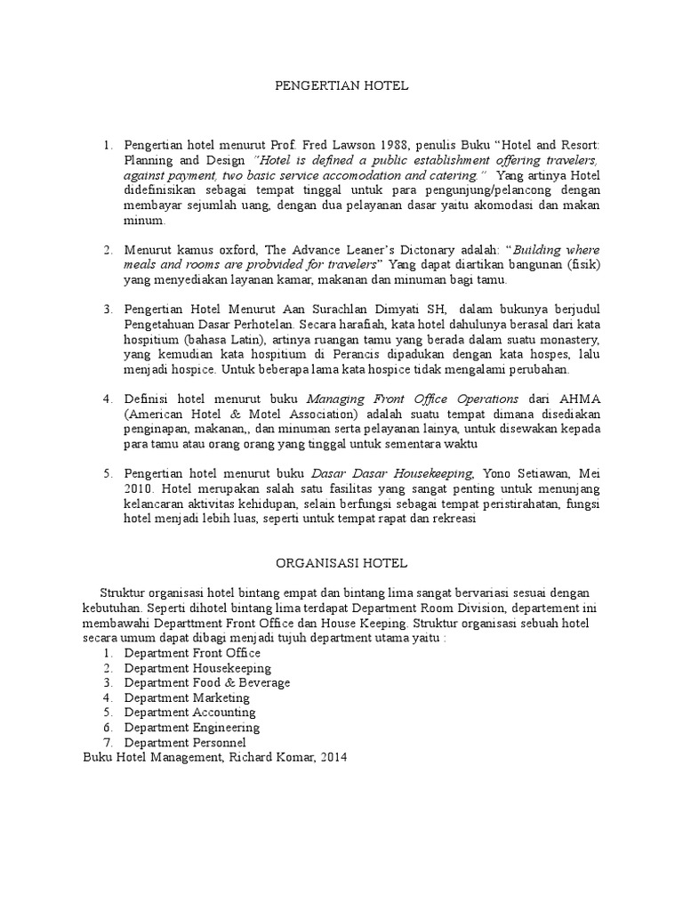 PENGERTIAN HOTEL: Fungsi, Jenis, Sejarah & Klasifikasi Hotel | Salamadian