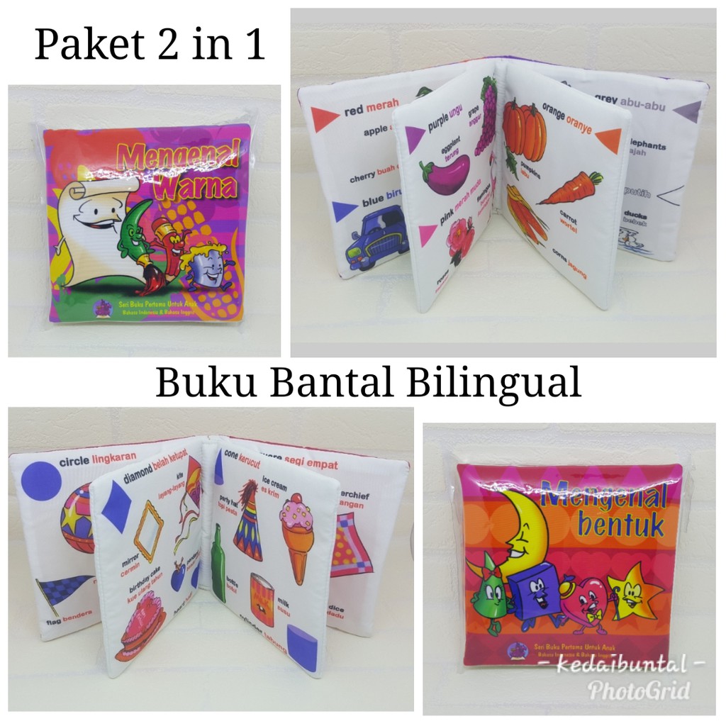 Paket 2 in 1 Mengenal Warna & Bentuk Buku Kain Bilingual Buku Bantal Buku Edukasi Buku Bayi | Shopee Indonesia