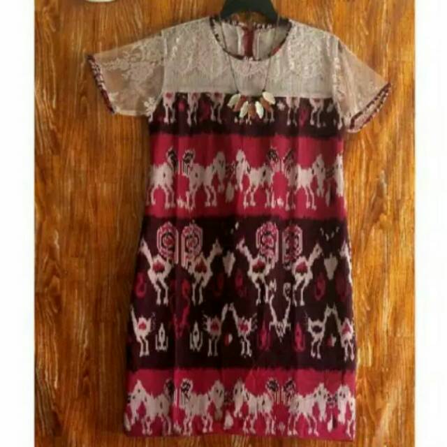 Jual dress tenun menjangan merah kombinasi brokat - Kab. Jepara …