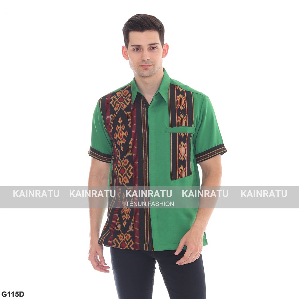 KAINRATU Kemeja Tenun Pria Flores - Baju Lengan Pendek Hijau Natal | Shopee Indonesia