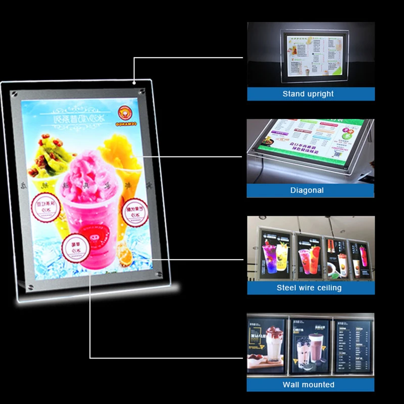 Iklan Lampu Kotak Display Poster LED Frame Menu Makanan Papan Crystal Akrilik LED Sign LED Bar Kustom Tahan Air Outdoor|Iklan Lampu| - AliExpress