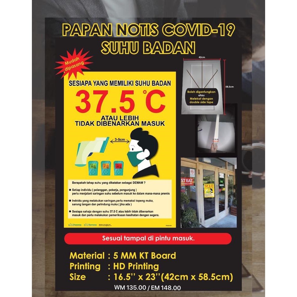 DISPLAY POSTER PAPAN NOTIS COVID-19 SUHU BADAN SOP | Shopee Malaysia