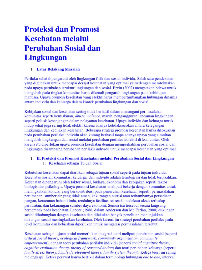Proteksi Dan Promosi Kesehatan Melalui Perubahan Sosial Dan Lingkungan