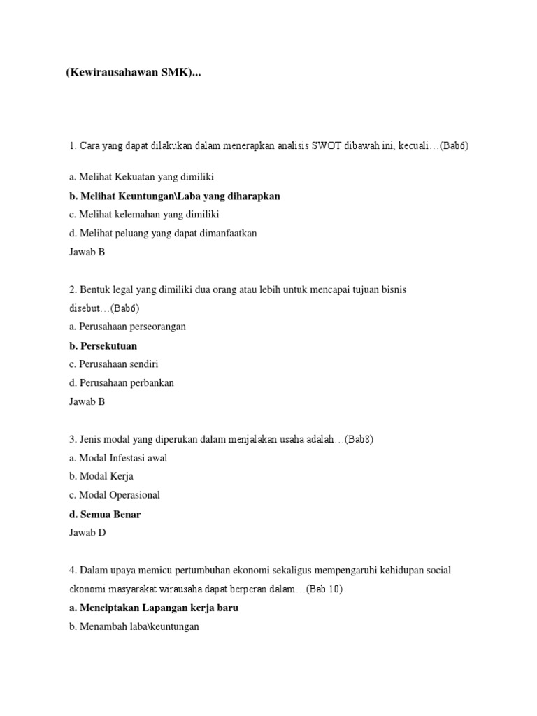 DOC) Soal kewirausahaan | umi irianti - Academia.edu