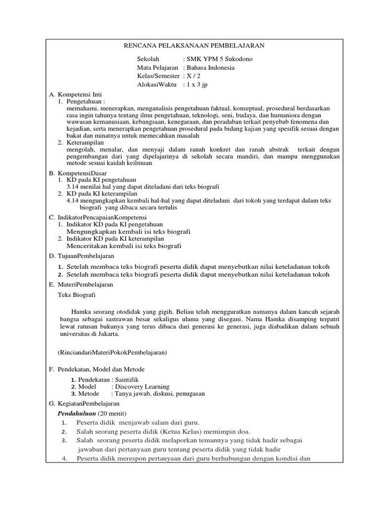 RPP Bahasa Inggris Kelas XI SMK tentang Teks Biografi -