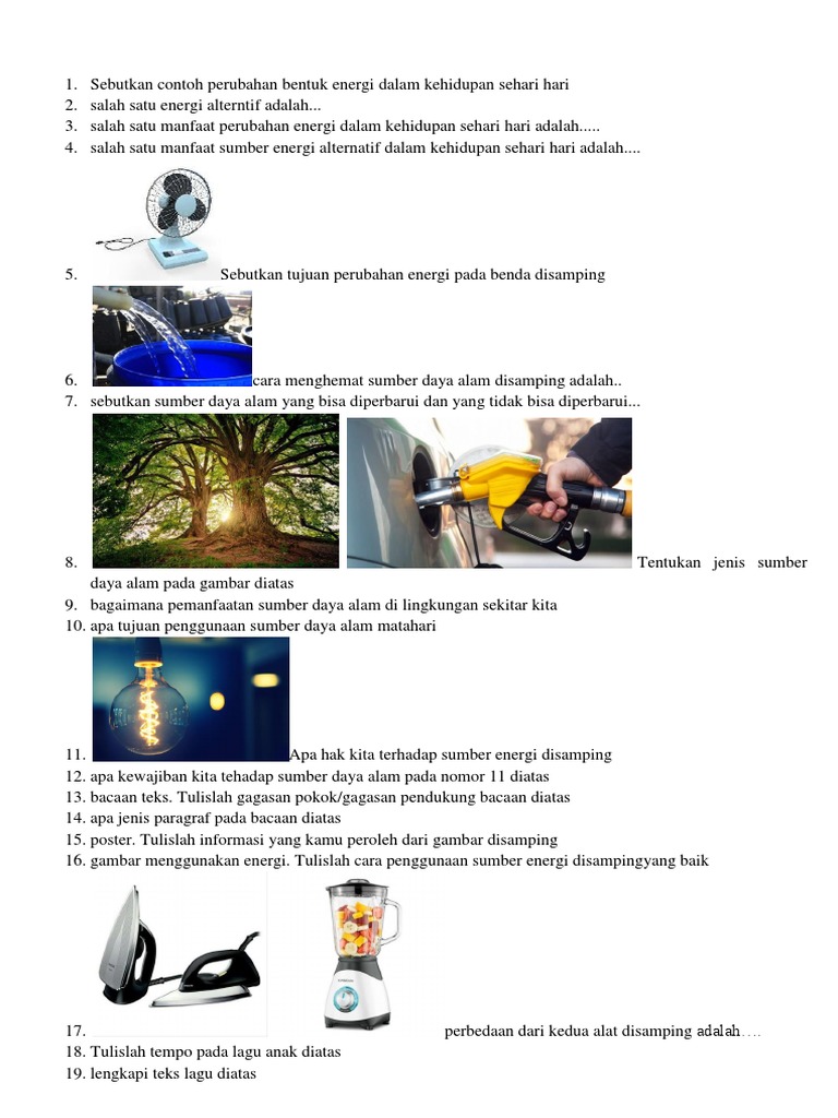 sebutkan 10 contoh pemanfaatan perubahan energi dalam kehidupan sehari hari - Brainly.co.id