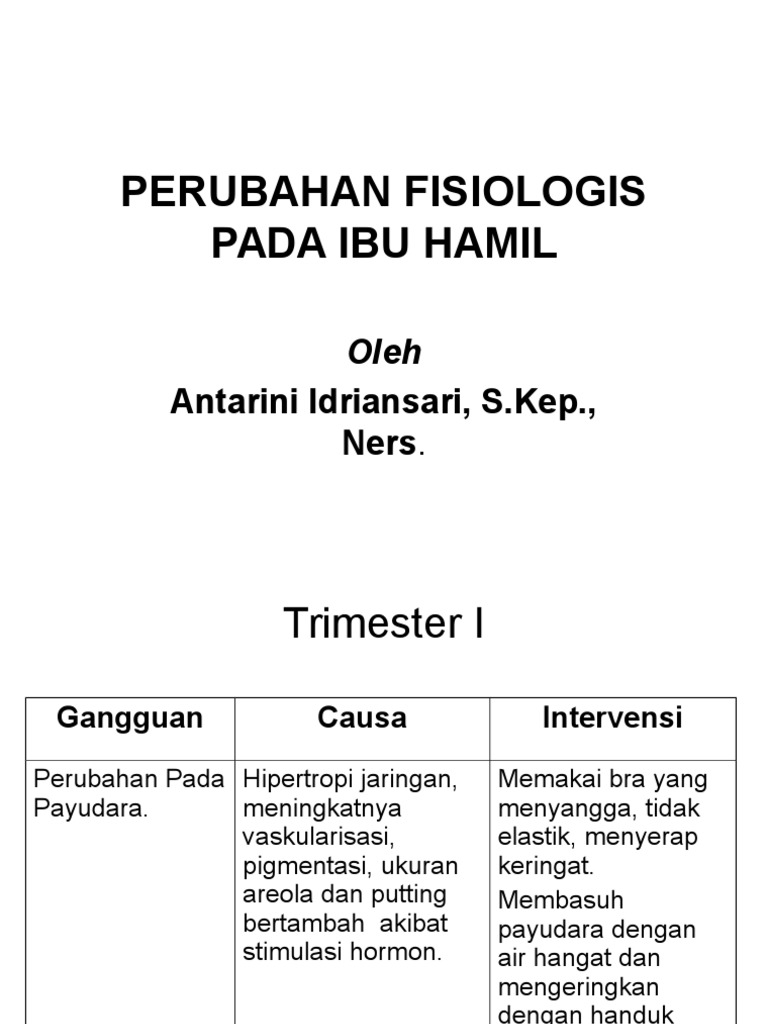 PERUBAHAN ANATOMI DAN ADAPTASI FISIOLOGI PADA IBU HAMIL TM I, II, III - ppt download