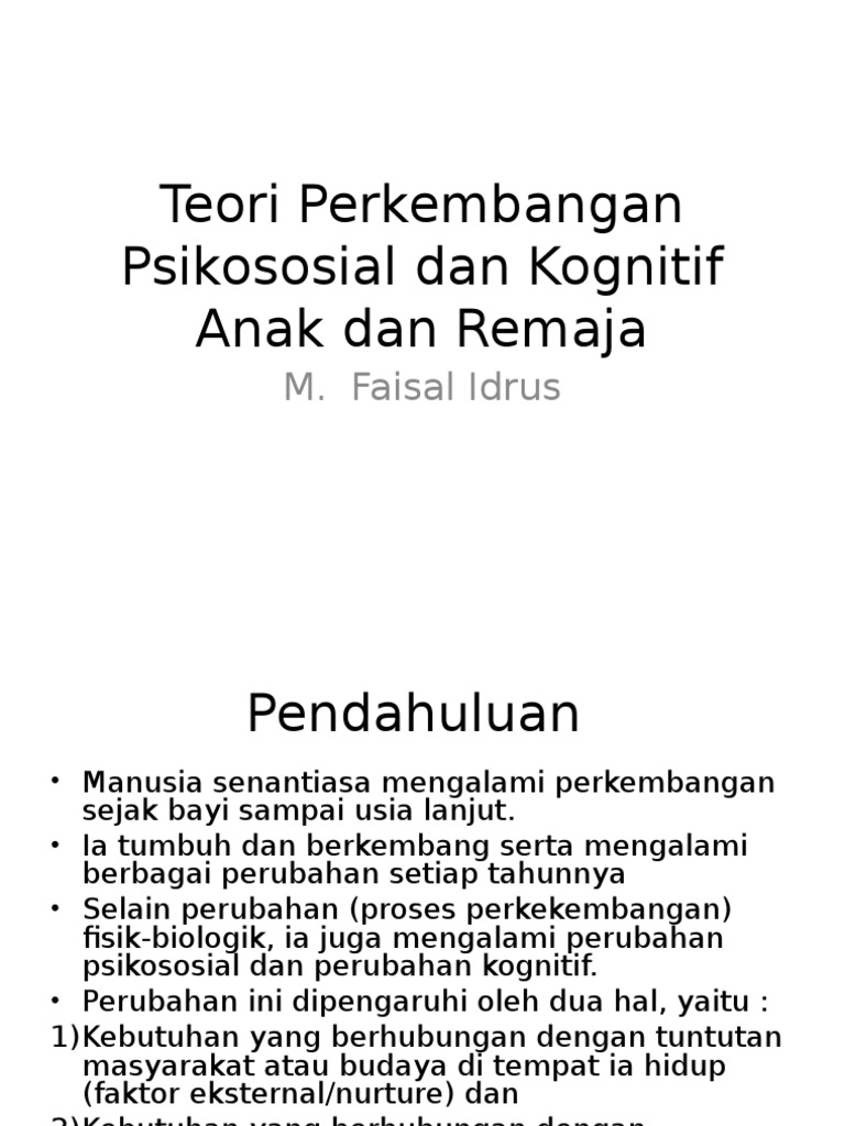 Teori Perkembangan Psikososial Dan Kognitif Anak Dan Remaja