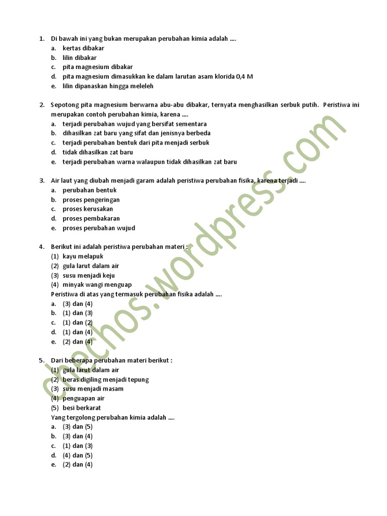 Soal perubahan fisika dan kimia kelas 7 kurikulum 2013 edisi …