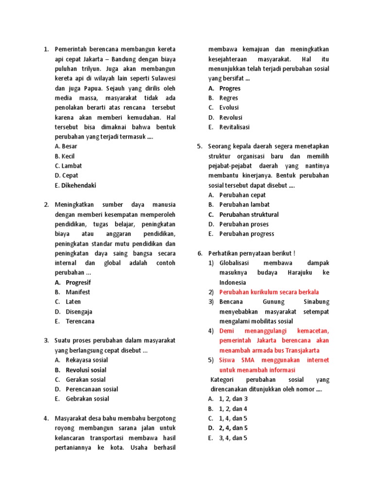 Latihan Soal dan jawaban perubahan sosial budaya untuk smp (Sosiologi) | Usaha321.net