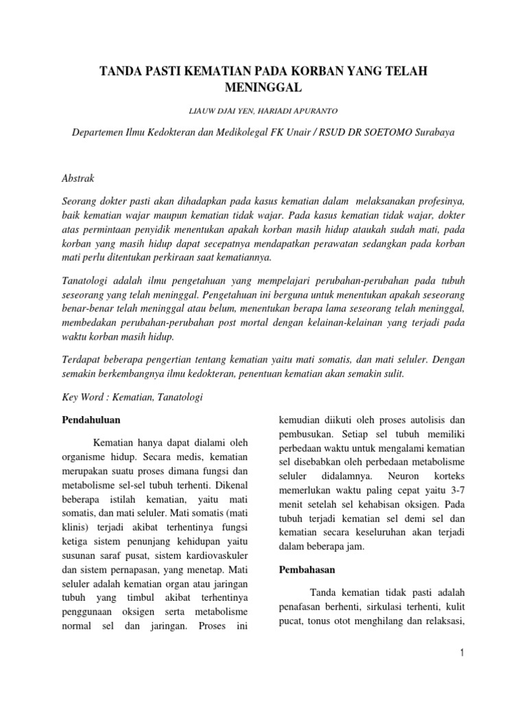 PDF) TANDA PASTI KEMATIAN PADA KORBAN YANG TELAH MENINGGAL | Jai Ya - Academia.edu